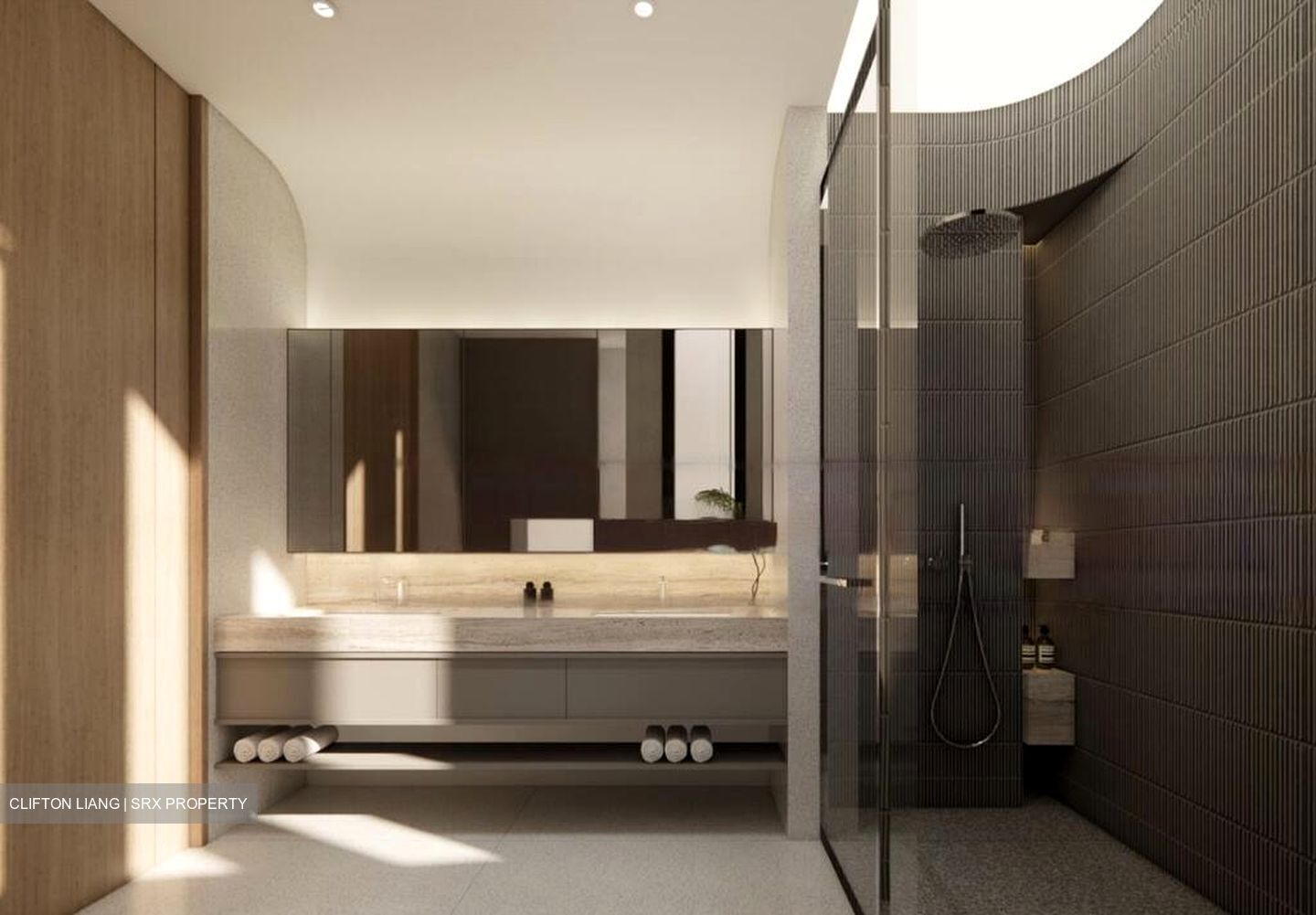 This one of a kind inter-terrace showcases smooth curves that shapes the flow of the home, every detail intentionally designed to both please the eye and serve a purpose. Complete with a light well to illuminate every level.
