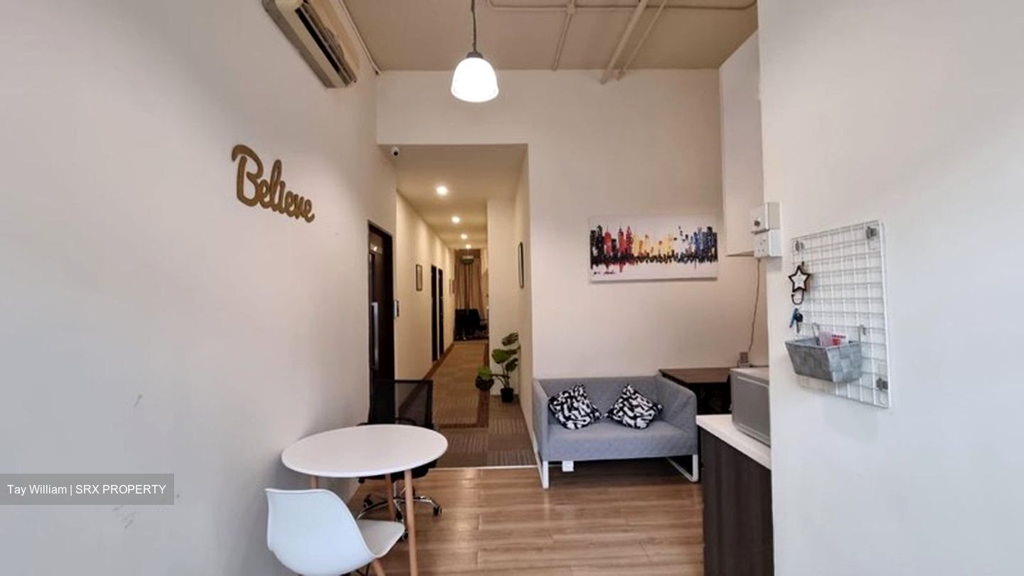 This place is modern with a cosy feel. It is fully renovated, fitted with aircon, lightings and glass door for the main entrance. It offers good common space for meeting up with clients and recreation. The layout is squarish. Utilities, wifi and pantry will be included in the rent.