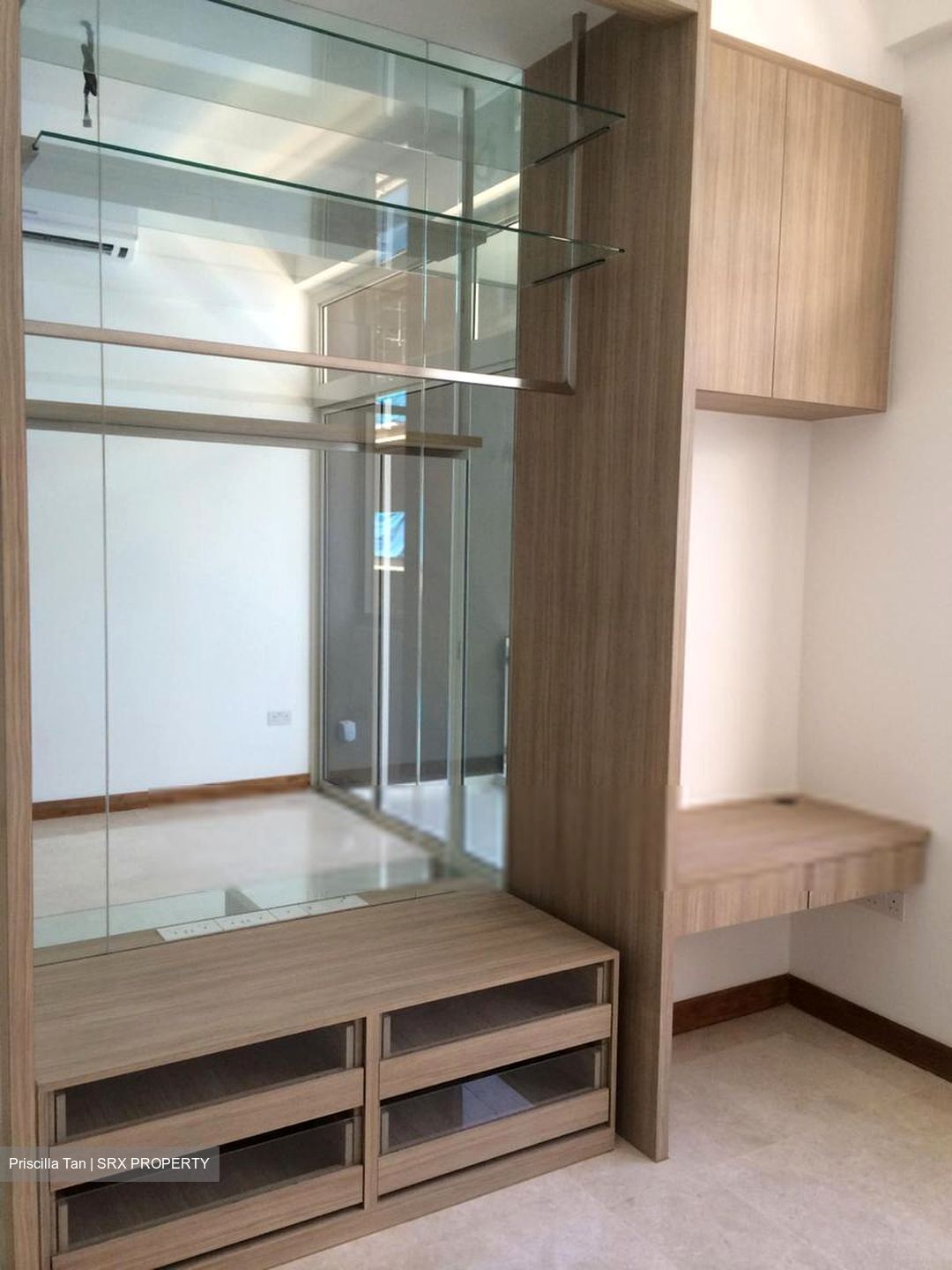 Rare layout without loft, comes with glass tv console and connecting glass wardrobe, full flexibility for ID. Dining table and shoe cabinet all built-in.